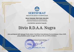 Divio R.D.A.A. Nugra, Finalis Duta Bahasa Provinsi Maluku Agribisnis FapertaJuni 26, 2025 Facebook Twitter WhatsApp Pinterest